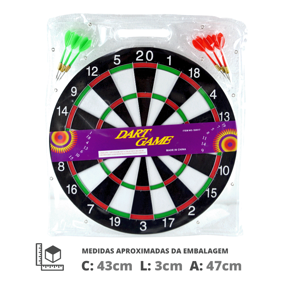 Contém: 1 alvo tradicional e 6 dardos com pontas metálicas.
