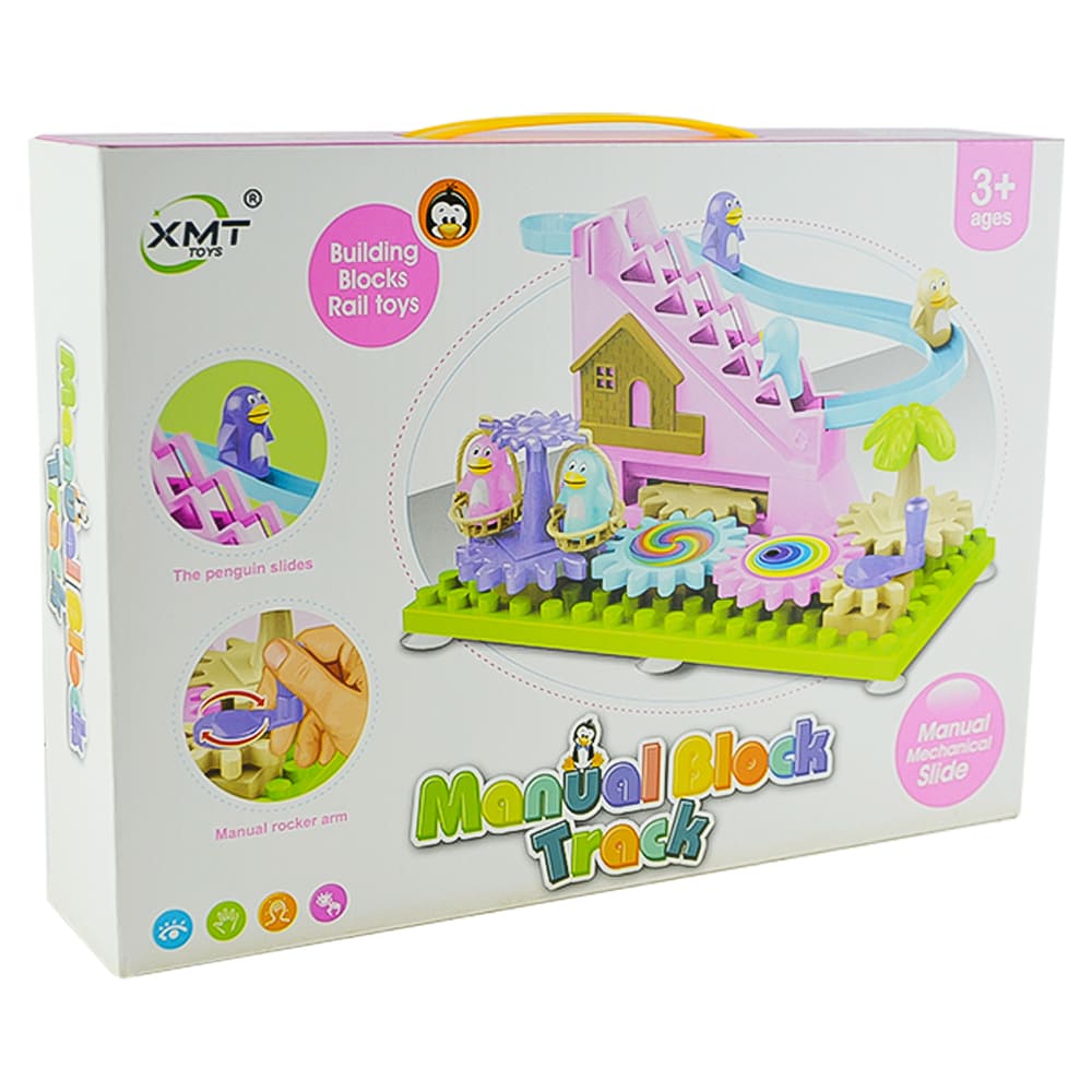 Os pinguins sobem e descem pela pista animada ao girar a engrenagem. Encante crianças e famílias com a Pista Pinguim Blocos Engrenagem, um brinquedo fascinante que combina movimento, som e iluminação em uma experiência cheia de diversão.